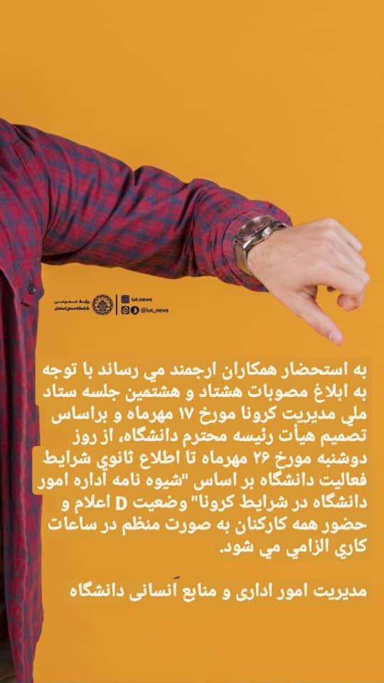 اعلام شرايط جديد فعاليت اداري دانشگاه صنعتي اصفهان