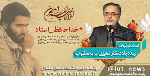 روابط عمومی دانشگاه صنعتی اصفهان، این ضایعه اسفناک و جبران ناپذیر را به جامعه علمی و دانشگاهی کشور و خانواده گرانقدر ایشان صمیمانه تسلیت عرض نموده و از خداوند متعال علو درجات آن استاد فقید را مسئلت می نماید.