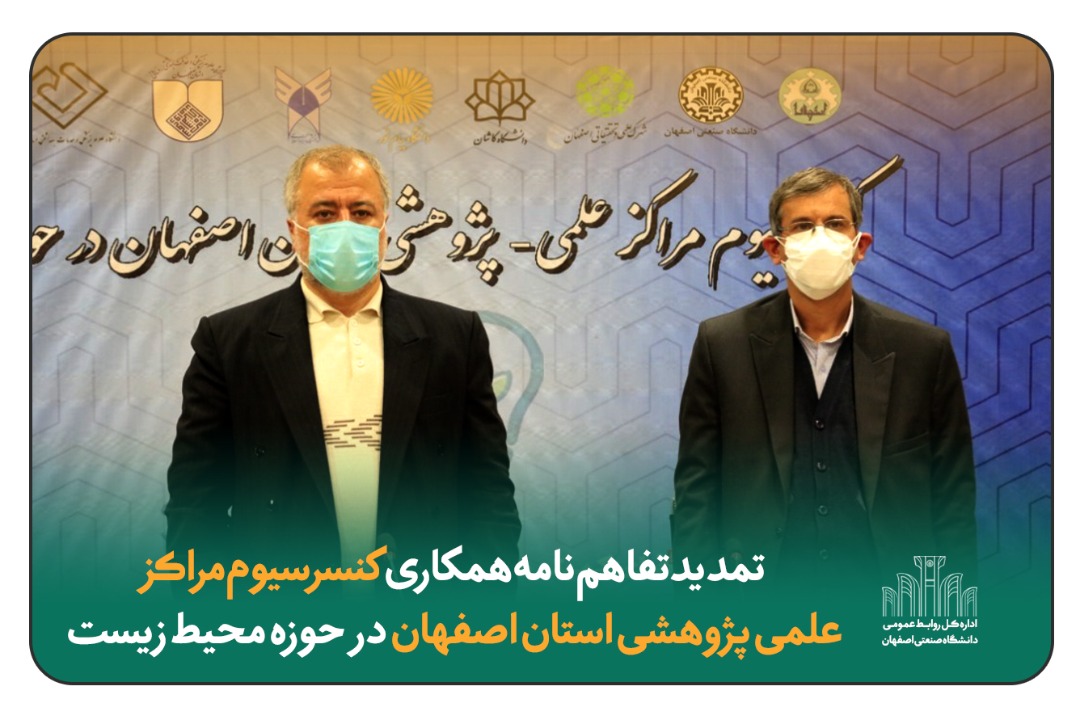 این تفاهم‌نامه همکاری که در سال ۱۳۹۹ بین ۶ دانشگاه و شهرک علمی تحقیقاتی اصفهان در راستای رفع چالش‌های زیست‌محیطی منعقد شد، برای دومین سال با اضافه شدن سه دانشگاه هنر اصفهان، علوم پزشکی کاشان و دانشگاه آزاد اسلامی واحد نجف‌آباد به اعضای کنسرسیوم، تمديد شد.