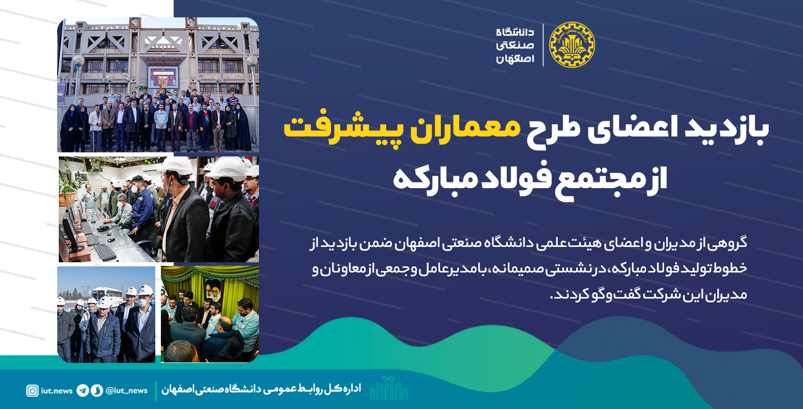 گروهی از مدیران و اعضای هیئت‌علمی دانشگاه صنعتی اصفهان در قالب طرح معماران پیشرفت ضمن بازدید از خطوط تولید فولاد مبارکه، در نشستی صمیمانه، با مدیرعامل و جمعی از معاونان و مدیران این شرکت گفت‌وگو کردند.