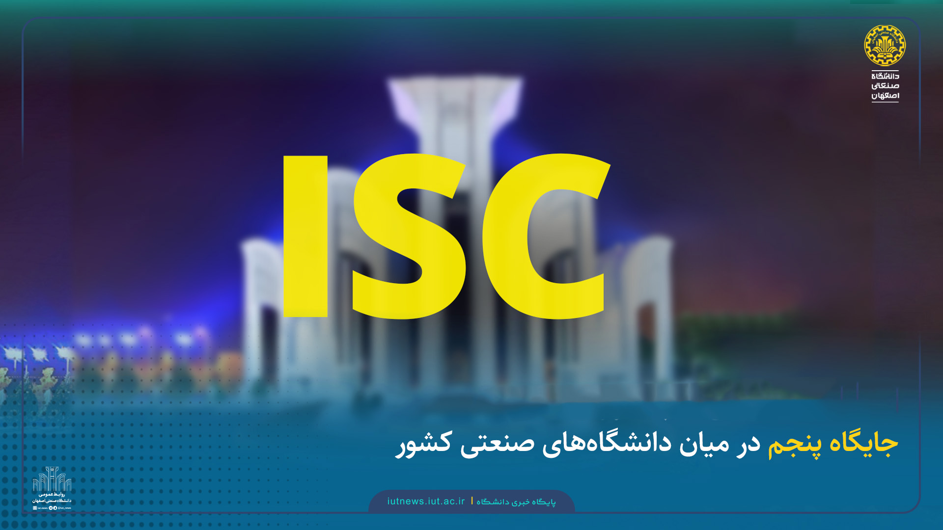 دانشگاه صنعتی اصفهان در تازه‌ترین رتبه‌بندی ملی ISC موفق شد جایگاه پنجم را در میان دانشگاه‌های صنعتی کشور به دست آورد.