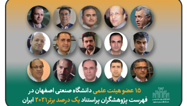 15 عضو هیئت علمی دانشگاه صنعتی اصفهان در فهرست پژوهشگران پراستناد یک درصد برتر 2021 ايران