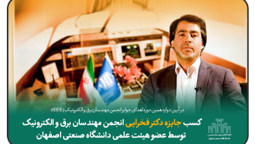 کسب جایزه دکتر فخرایی انجمن مهندسان برق و الکترونیک توسط عضو هیئت علمی دانشگاه صنعتی اصفهان