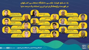 18 عضو هیئت علمی دانشگاه صنعتی اصفهان در فهرست پژوهشگران ایرانی پر استناد یک درصد دنیا قرار گرفتند