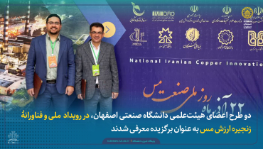 دو طرح اعضای هیئتعلمی دانشگاه صنعتی اصفهان، در رویداد ملی و فناورانهٔ زنجیره ارزش مس به عنوان برگزیده معرفی شدند